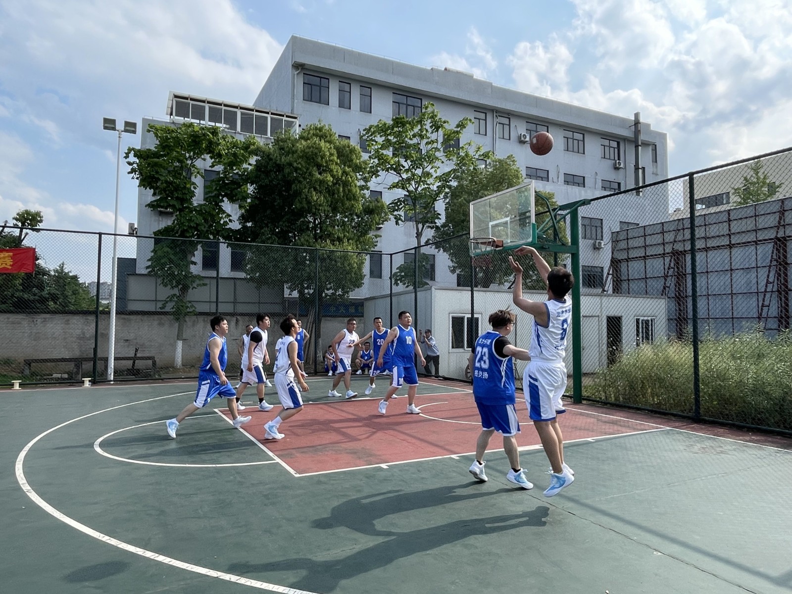 公司傅董親自為本次比賽進行跳球儀式。隨著裁判一聲哨響,整個球場立即充滿緊張氣氛,搶球、運球、掩護、突破、跳投……球員們的激情在籃球場上體現得淋漓盡致。場外的觀賽員工熱情高漲,歡呼聲、吶喊聲讓比賽氣氛不斷升溫。